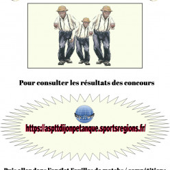 Organisé par Genlis en partenariat avec l' Association du Boulodrome ; triplette Vétérans par poule A/B ; début 8h30 précise ; limité à 72 Triplettes ; inscription jusqu'au 3/2 dernier délai ; voir affiche équipe Asptt : 1) Titone/ Didier G/ Patoche...