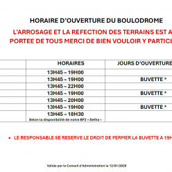 Le concours de samedi 10 janvier 2026 en triplette organisé par le club de Coataudon est limité à 50 équipes pour une raison te...