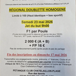 FORM DOU HOMOGENE - CAT TC - FLE PP1 - FP 10€ - DOTATION 1500€ Concours B réservé aux perdants de poules FLE 1 - FP 6€ - DOTATION 500€