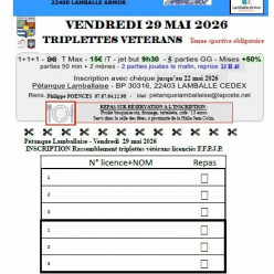Rassemblement triplettes vétérans vendredi 29 mai 2026