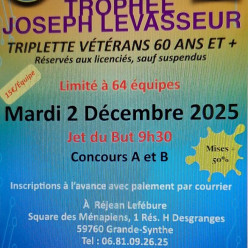 Réception CHAMPIONNAT VETERAN DU DISTRICT CENTRE Tressin SEMAINE 47 SEULES LES PISTES 5 ET 6 SERONT DISPONIBLES POUR LES LOISIRS.