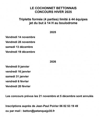 Concours Hiver en Triplettes formees au Boulodrome