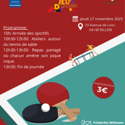 Dans le cadre du dispositif "Mercredi ? SAJ!", le CDSA 64 propose un créneau de Para Football Adapté SAJ, destiné aux garçons de 8 à 21 ans. Les séances ont lieu tous les mercredis après-midi de 14h à 15h30, hors vacances scolaires, sur le terrain Pa...