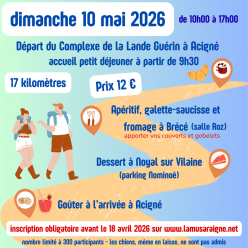 Randonnée festive intercommunale avec les clubs "La Musaraigne" d'Acigné, "Celt'Pieds" de Brécé et "la Clef des Champs" de Noyal-sur-Vilaine. Accueil des participant.e.s avec café d'accueil à partir de 9H30 à Acigné - salle de sports de la Lande...