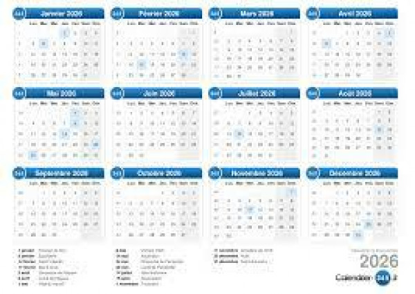 Calendrier des entrainements 2026