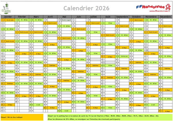 Vous trouverez en pièce jointe le programme de nos entraînements de marche pour l'année 2026.