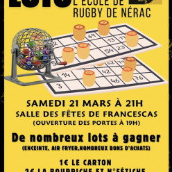 LOTO DE L’ÉCOLE DE RUGBY DE NÉRAC L’école de rugby vous donne rendez-vous pour une grande soirée loto! Samedi 21 mars D...