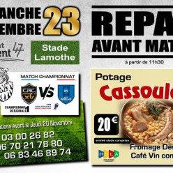 Bonjour, La rencontre contre le RC ROUGIER se déroulera au stade LAGARDE à CAMARES. Départ du PAC en car = 9H30, le déjeuner ser...