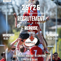 Publié le 22 août 2025REPRISE PÔLE JEUNES – RC Saint-Louis Rendez-vous vendredi 22 août à 18h30 Stade de l’Au – Saint-Louis Entraînements : merc...
