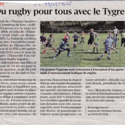 Publié le 03 septembre 2025Tu veux vivre une aventure sportive et humaine hors du commun ? Le club TYGRE Rugby ouvre ses portes et recrute de nouveaux joueu...
