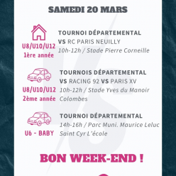 👉 On compte sur vous pour encourager nos équipes !🏉 École de Rugby – Samedi 11 avril🔹 U8 – Mini-poussins🏆 Tournoi départemental –...