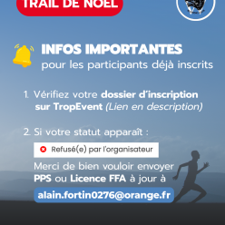 Pour les personnes déjà inscrites au Trail de Noël, merci de vérifier que votre dossier est complet via la liste des participants...