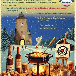 Soirée biathlon/fondue, le mardi 17/02, à partir de 18h30 (inscriptions et entrainement de tir), à Nozeroy. Rendez-vous sur la place des Annonciades: Course à pied + tir laser, suivi d'une fondue dans la cave !! Le principe: l'animation biat...