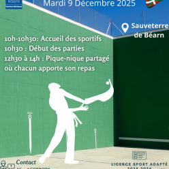 Cette journée est une journée Compétition et s'adresse à des personnes en situation de handicap mental quelque soit le niveau cognitif qui savent jouer à la pala. Cette journée, sera composée de la sorte : De 10h à 10h30 : Accueil des sportifs 1...