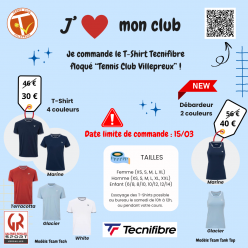 Publié le 25 février 2026Pensez à commander votre T-Shirt "Tennis Club Villepreux" ! Nouveauté cette année, les dames et les filles ont le choix entre...