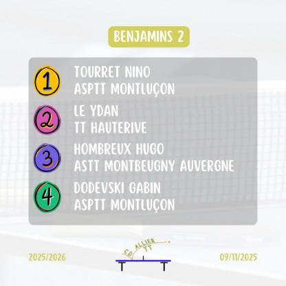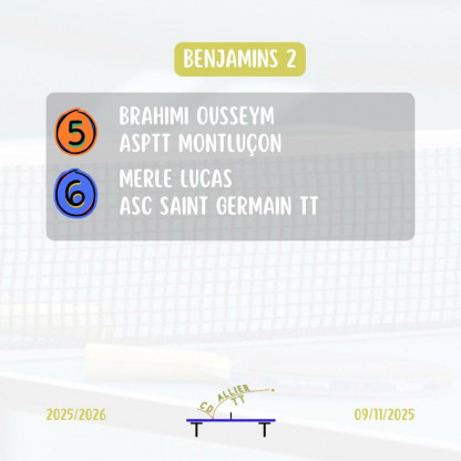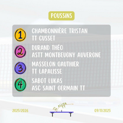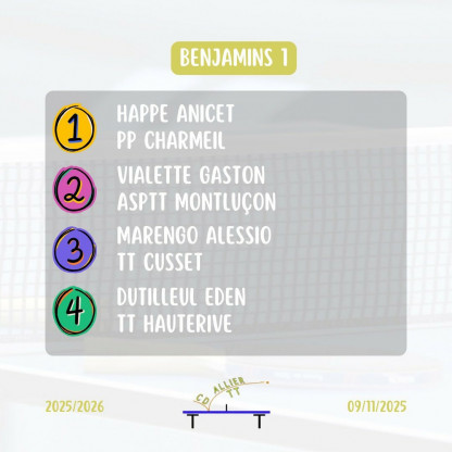 Championnat jeunes Tour 2 le 07/12/2025 à Montluçon(Match-ping)