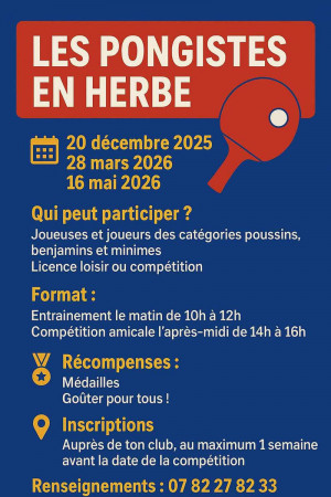 Bonjour à tous, C'est l'heure de la reprise pour nos pongistes en herbe. Une compétition leur est réservée et les inscriptio...