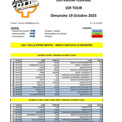 Bonjour à tous, Voici la convocation mise à jour pour le 1er tour du critérium prévu dimanche 19/10/2025 à Charleville-Mézière...