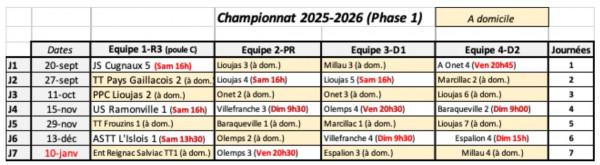 Bientôt la première journée du championnat par équipe