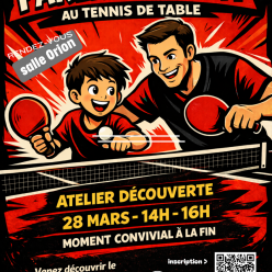 Dans le cadre de sa formation BPJEPS, Thomas propose à toute les familles un après midi découverte du tennis de table sous forme d'ateliers puis de matchs. un pot de l'amitié sera proposé à l'issu de l'animation. Thomas compte sur votre particip...