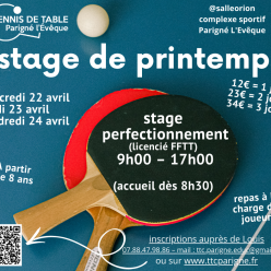 Entrainements Jeunes: - 17h30 à 19h00 - 19h00 à 20h30 Entrainements Adultes : - 20h30 à 22h30
