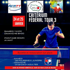 3 eme Tour du Critérium Fédéral Echelon Départemental les 24 et 25 Janvier 2026 Information concernant les salles, ce tour se déroule au sein de 2 salles HAM et ABBEVILLE. (il y a 2 couleurs différentes pour les distinguer dans le fichier ) Liste...