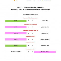Publié le 23 décembre 2025Cette 6ième journée a permis à l'équipe 2 d'assurer le maintien avant la dernière journée. L'équipe 1 recevait l'équipe 3 de Chan...