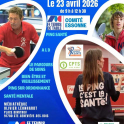 TABLE RONDE : LE PING, C'EST LA SANTÉ ! Votre rendez-vous sport & santé à ne pas manquer ! Le Comité de l’Essonne et la FFTT vous invitent à explorer les bienfaits du tennis de table dans le monde médical. Au programme de cette matinée d'échan...