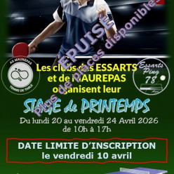 STAGE CTTE PRINTEMPS 2026 Du 20 Avril 2026 au 24 Avril 2026. Adresse : Palais des Sports d'Elancourt - rue de la Beauce - 78990 ELANCOURT Contacts : Augustin MUSITELLI - 06.95.08.88.23 ou Chafid LOUCIF - loucif.chafid@hotmail.fr