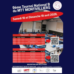 Le MTT à le plaisir de vous annnocer l'organisation de son 9ème Tournoi National B. Vous trouverez toutes les informations concer...