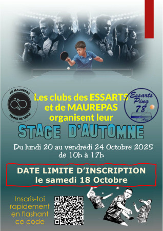Le stage d'automne, organisé conjointement par les clubs des Essarts et Maurepas est ouvert à tous les jeunes pongistes désireux de progresser physiquement et techniquement. Cliquez ici pour en savoir plus !