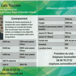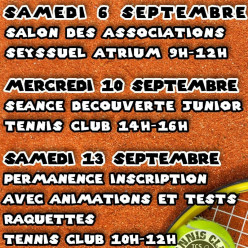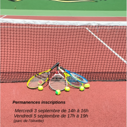 Les inscriptions à l'école de tennis pour la rentrée 2025/2026 se dérouleront au club: -Le mercredi 3 septembre de 10h00 à 18h30...