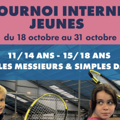 Les tournois reprennent au FOS TENNIS, avec pour en premier lieu le Tournoi Interne des Jeunes ! Il se présentera comme suit : deux catégories d'âges (11/14 ans et 15/18 ans) en simple messieurs et simple dames. Autre informations ci-dessous :
