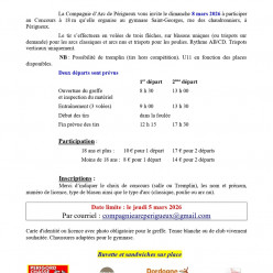 Publié le 22 février 2026Le concours loisir de Périgueux se tiendra le 8 mars 2026. Le mandat est disponible sur notre page "Mandats & Résultats" !