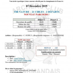 Tir Libre entrainement Responsable Bernard Delfosse. Nous vous proposons, lors de cette séance, une découverte complète de notre activité sans viseur: différents types d’arcs (arc nu, arc de chasse et arc droit), tir en salle et parcours en pleine...