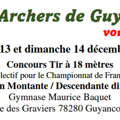LES ARCHERS DE LA FONTAINE DES DUCS VOUS INVITENT SAMEDI 13 ET DIMANCHE 14 DECEMBRE 2025 A leur concours 2x18m sélectif pour le championnat de France Tous les détails dans le mandat.