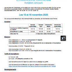 Mandat Inscription en ligne: https://www.archers.ouistreham.fr/en-savoir-plus/concours-salle-2x18m-158599 Par email: -inscripion.archersdeouistreham@gmail.com ou au 06.63.45.84.33