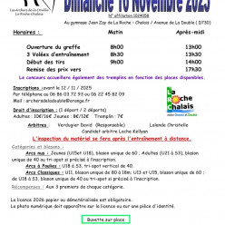 Le concours salle de La Roche-Chalais se tiendra le 16 novembre 2025. Le mandat est disponible sur notre page "Mandats & Résultats...