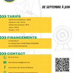 Publié le 01 septembre 2025Ce jeudi 14 août 2025, le club s'est rendu à la Maison de la Dronne, à Montagrier, pour une journée d'initiation au tir à l'arc !...
