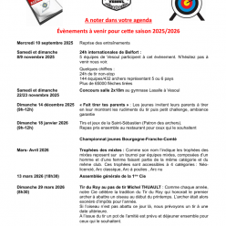 A noter dans vos agenda les différents événements à venir pour la saison 2025 / 2026