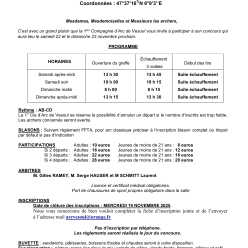 Bonsoir à tous, C’est avec un grand plaisir que la 1ère Compagnie d’Arc de Vesoul vous invite à participer à son concours en sall...