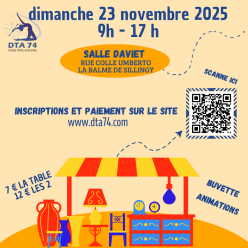 Longueur d'une table : 1m82 Installation dimanche 23/11/2025 de 7 h à 9 h