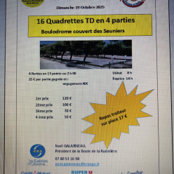 Dimanche 19 octobre, la Boule de la Rudelière organise le Prix du Casino JOA, aux boulodrome des Sauniers à la Chaume. Cette com...