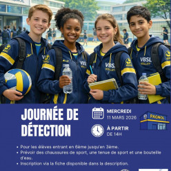 JOURNÉE DE DÉTECTION – SECTION VOLLEY VBSL En partenariat avec le Collège Pagnol Mercredi 11 mars 14h00 – 16h00 Salle Pagnol...