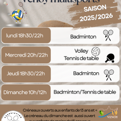 Publié le 26 août 2025Voici le planning pour cette saison 2025-2026