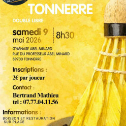 Le club de Tonnerre organise un tournoi en double libre le samedi 9 mai 2026. Inscription: 2€/joueur Buvette et restauration sur place avec formule à 5€ possible